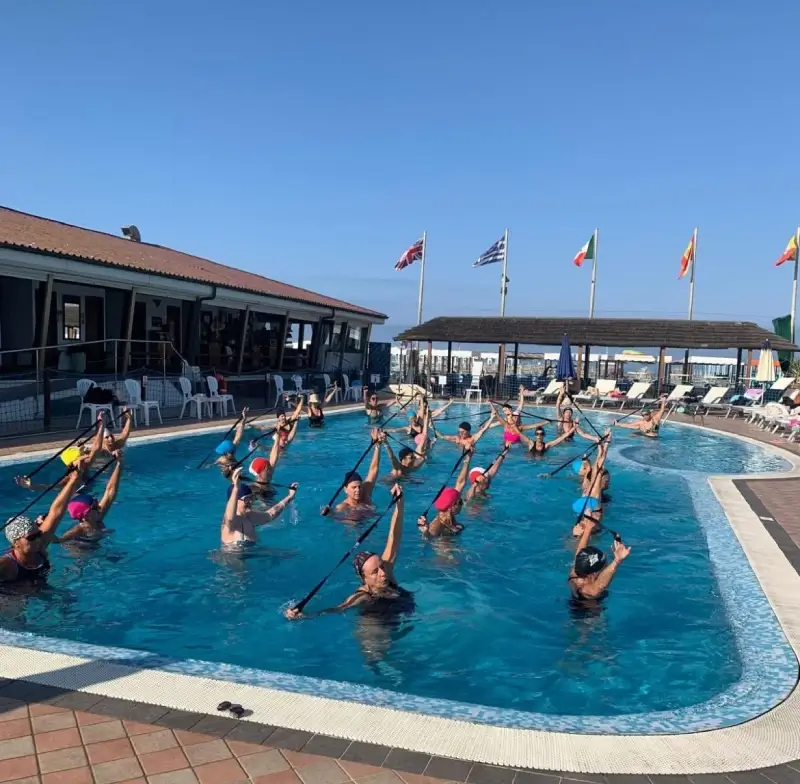 Proseguiamo per la seconda mezz’ora in piscina, dove grazie alla resistenza naturale dell’acqua, intensifichiamo il lavoro su gambe, glutei, addome e braccia, mantenendo sempre il focus su postura e respirazione.